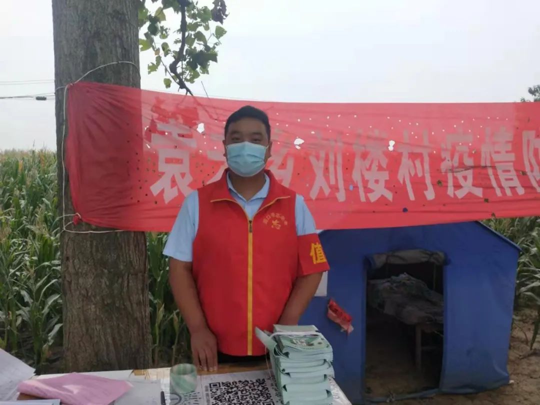 刘曼各老师在袁老乡疫情防控服务点为村里群众测量体温,并进行信息登记